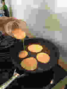 Blend all ingredients thoroughly till smooth and creamy, prepare a hot oiled skillet and fry as small pikelets. Allow the mini pancakes to cook about 70% before flipping them over to cook the other side. Serve hot and enjoy as finger food - goes well with the macadamia smoothie posted earlier. Enjoy!