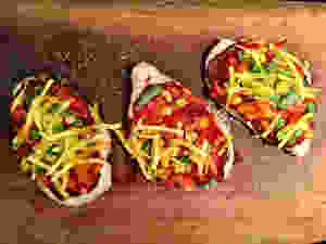 Pre-heat the oven (200 degrees C) - I used grill and fan forced. Place the chicken pieces on a baking tray lined with baking paper. Top each piece with tomato paste, finely chopped veggies and shredded cheese. Sprinkle with herbs and pop in the oven for about 25 mins checking occasionally to make sure they don't burn. Serve as is or with a side of sweet potato shoe string fries. Enjoy!